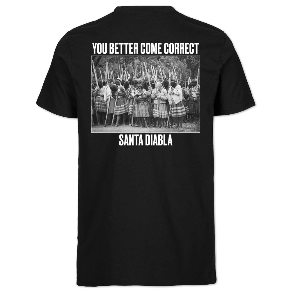 Endlich mal ein ordentliches Hardcore-Shirt aus dem Hause Santa Diabla 😉 Front- und Backprint auf einem klassischen schwarzen Shirt, handmade in Emsdetten.